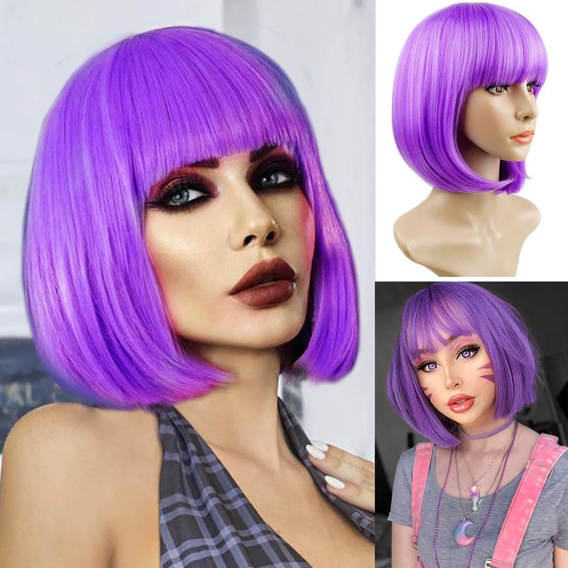 1.【Bob Wigs Features】High Quality Heat Friendly Synthetic Fiber, It Looks, Moves And Feels Like Real Hair With Affordable Price And Very Easy To Apply. 2. 【Bob Wigs After Sale】One Wig Plus One Wig Cap. Adjustable Size,It Fits Most People'S Heads. You Can Return It If It Doesn'T Fit Or You Don'T Like It. 3.【Bob Wig Introduction】 Length: 12 Inches. Weight: 180 G (4.3 OZ) .Color: Purple. 4. 【Bob Wig Use】Very Comfortable To Wear, Easy To Wash And Care By Using A Little Mild Shampoo In Cold Water. 5. 【Use Occasions】This Bob Wig Help You To Make A Distinctive Looking On St Patrick'S Day, Halloween, Cosplay Theme Parties, Weddings, Prom, Evening Out And Any Other Occasion.