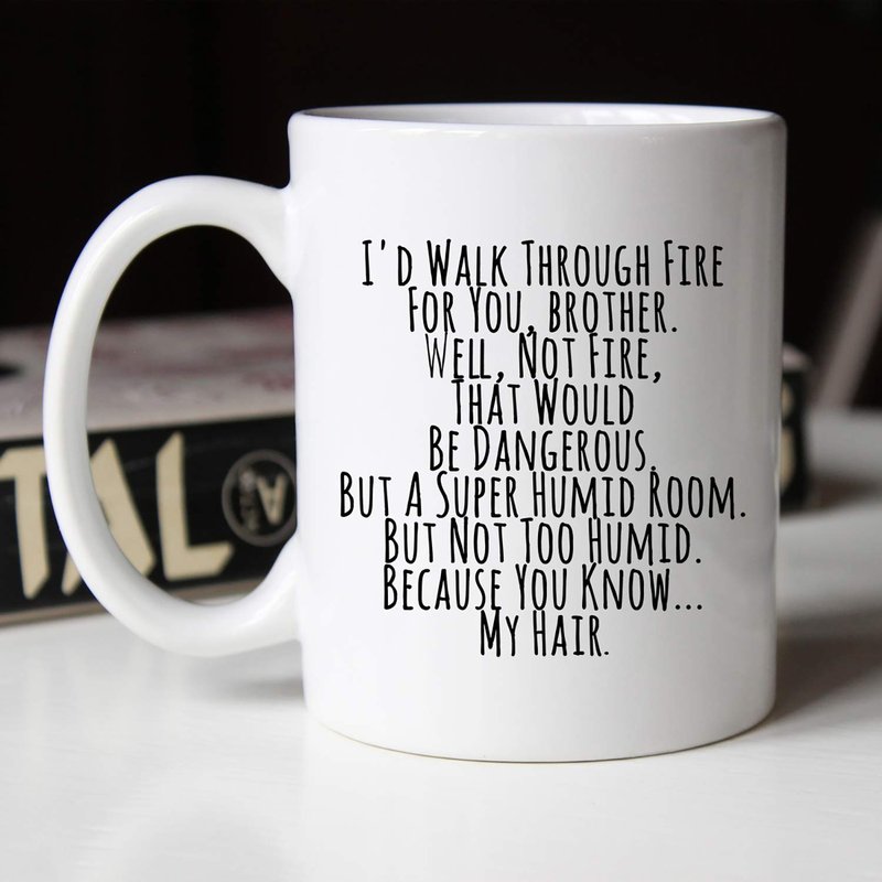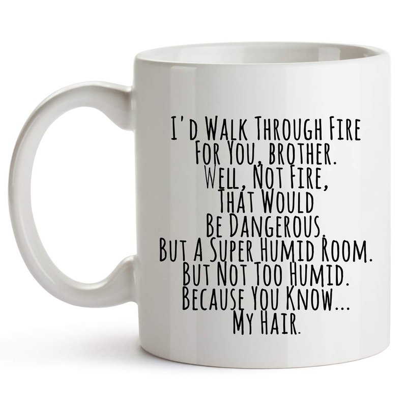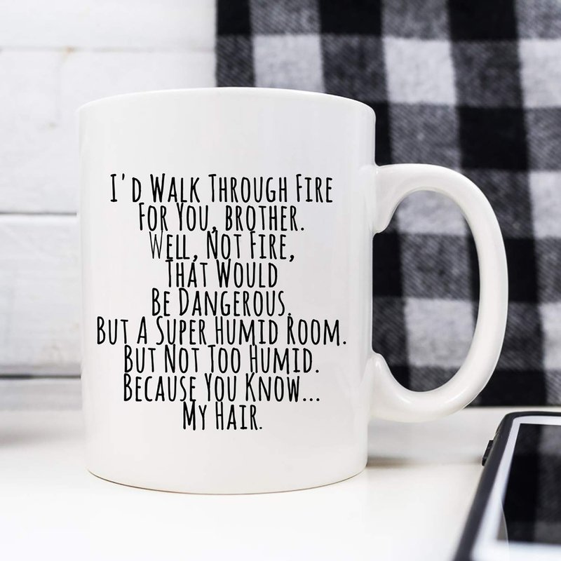 YouNique Designs I’d Walk Through Fire for You Brother Coffee Mug, 11 Oz, Brother Gifts for Brother Adult, Funny Brother Mug from Sister, Birthday Gifts For Brother
