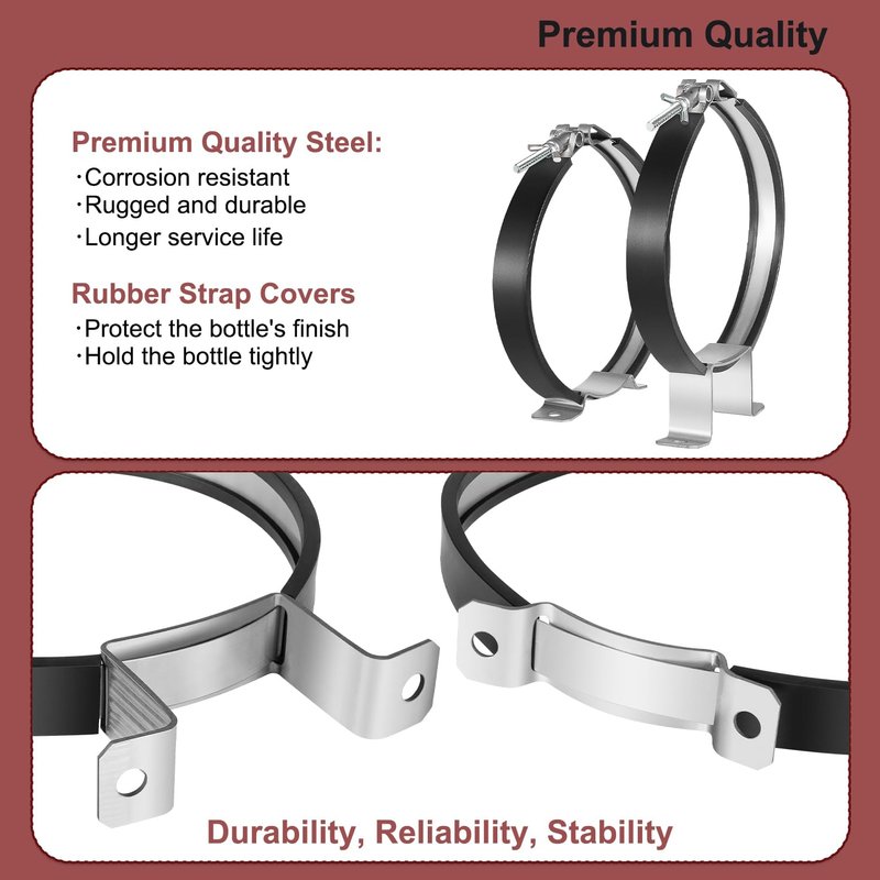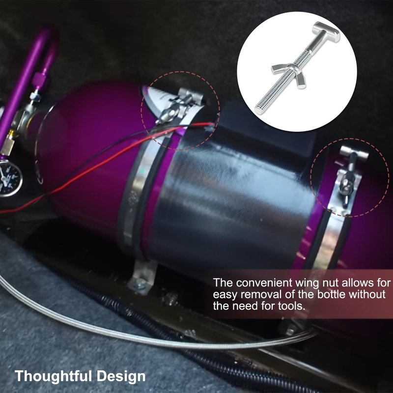 - Premium Quality - Crafted from high-quality steel, this Nitrous Oxide Bottle Bracket offers exceptional durability, reliability, and stability. The bracket is equipped with rubber strap covers to protect the bottle's finish.