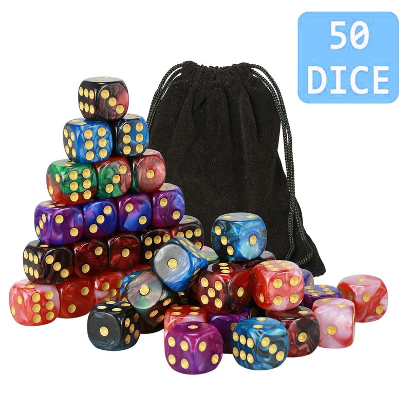 Package Includes:50 x Two-Tone D6 dices, 1 x game dice organized bag