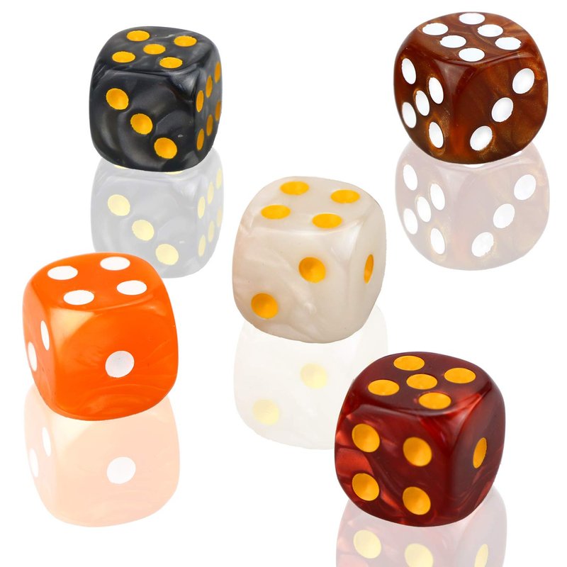 10 dices with 5 pearl colors, always enough for most dice games or board games, including TENZI, YAHTZEE, FARKLEM BUNCO, LIARS DICE, etc. and other casino games.