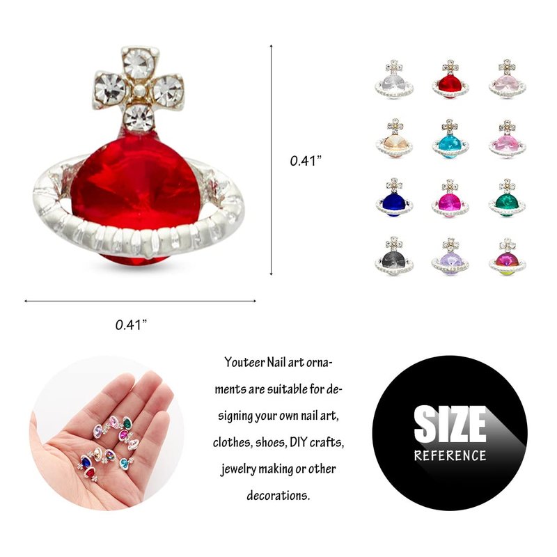 Youteer 60 Pcs Planet Nail Art Rhinestone, Luxury 3D Glitters Saturn Shape Design Crystals Nail Art Charms for Acrylic Nails DIY Crafts Nail Art Decorations, 12 Styles.