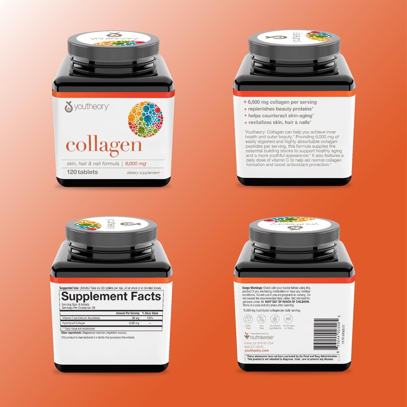 - Collagen Protein for Women and Men: Youtheory Advanced Collagen provides 6,000 mg of hydrolyzed collagen peptides with vitamin C for hair, skin, and nails*