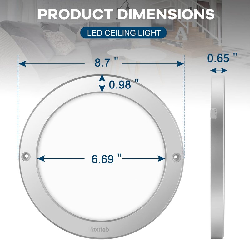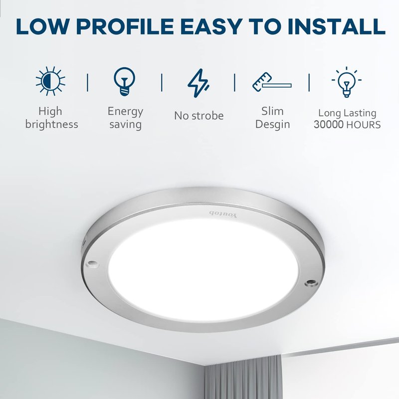 - 【Super Bright】Youtob Ultra Bright LED Ceiling Light provides 1200 lumens and 4000k temperature color high bright light. It is much brighter than most of other ceiling light in this size.