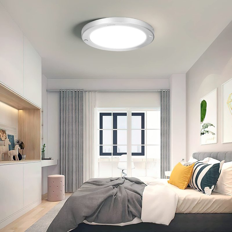 - 【Stylish and Slim Design】Product dimension: 8.7*8.7*0.65 inches. Its smooth and large shade makes the lighting even and wide-Modern, Features brushed silver color and slim round design, perfect for hotels, commercial areas and your house.