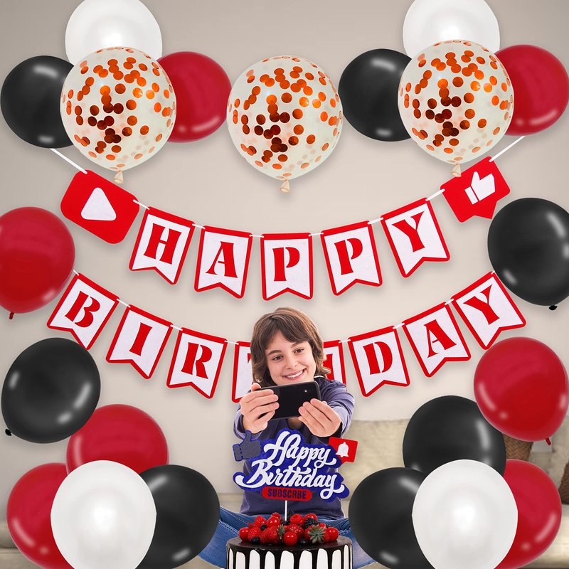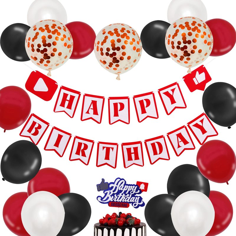 - Assorted Latex Balloons Set: The theme color is red white and black to matching the youtube banner and cake topper. All the balloons are suitable for air or for helium, coming with a ribbon