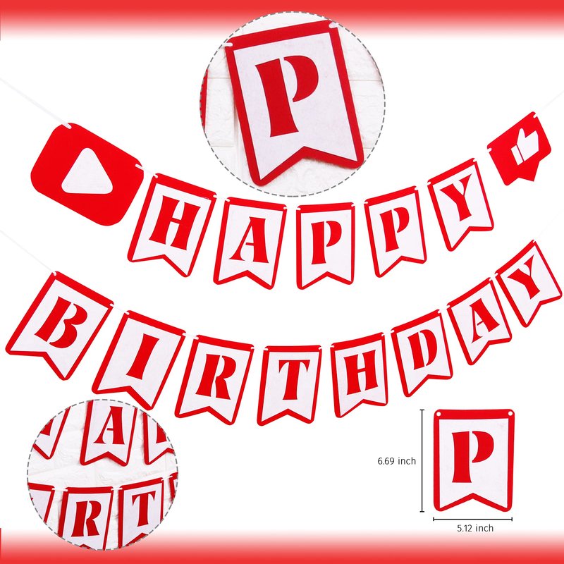 - Handmade Birthday Banner: Made of premium felt material, durable and and reusable. Contains the play button and like button elements, leaving a deep impression
