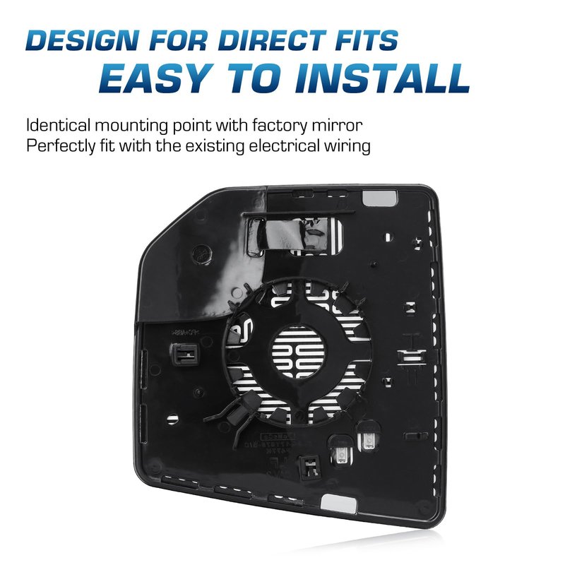 - 🚘EASY INSTALLATION - Identical mounting point with factory mirror; Perfectly fit with the existing electrical wiring. Wiring harness must be unplugged from existing backing plate and plugged into the new backing plate before installation. You can finish the installation in a few minutes.