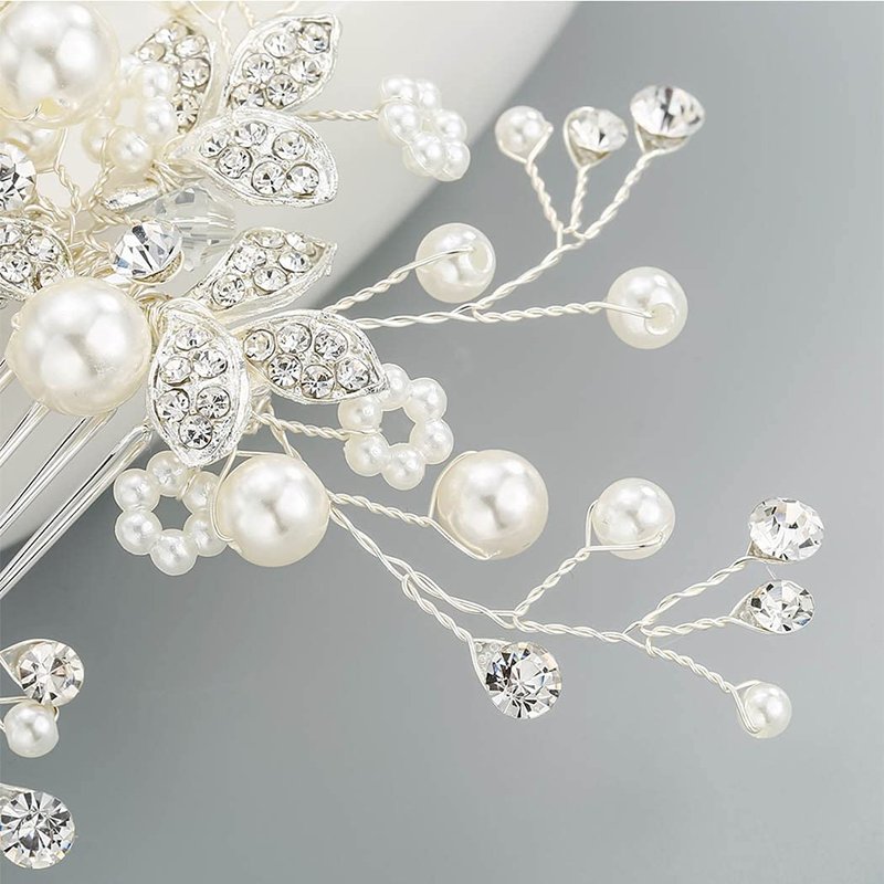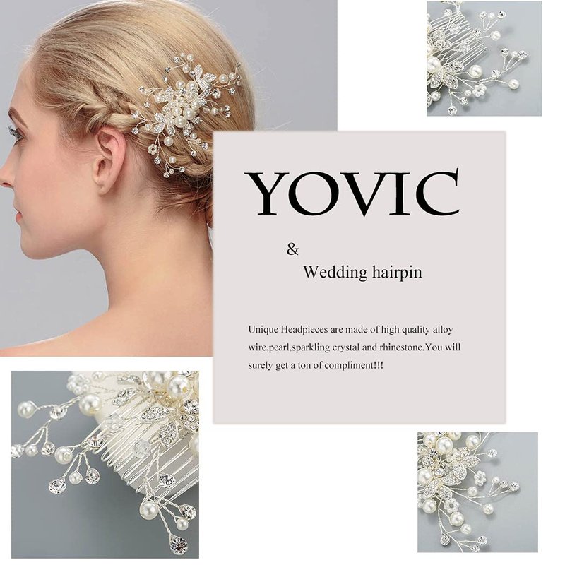 Yovic Crystal Bride Wedding Hair Comb Silver Bridal Headpieces Rhinestone Pearl Hair Pieces Bridesmaid Side Combs Hair Accessories for Women and Girls(Silver)