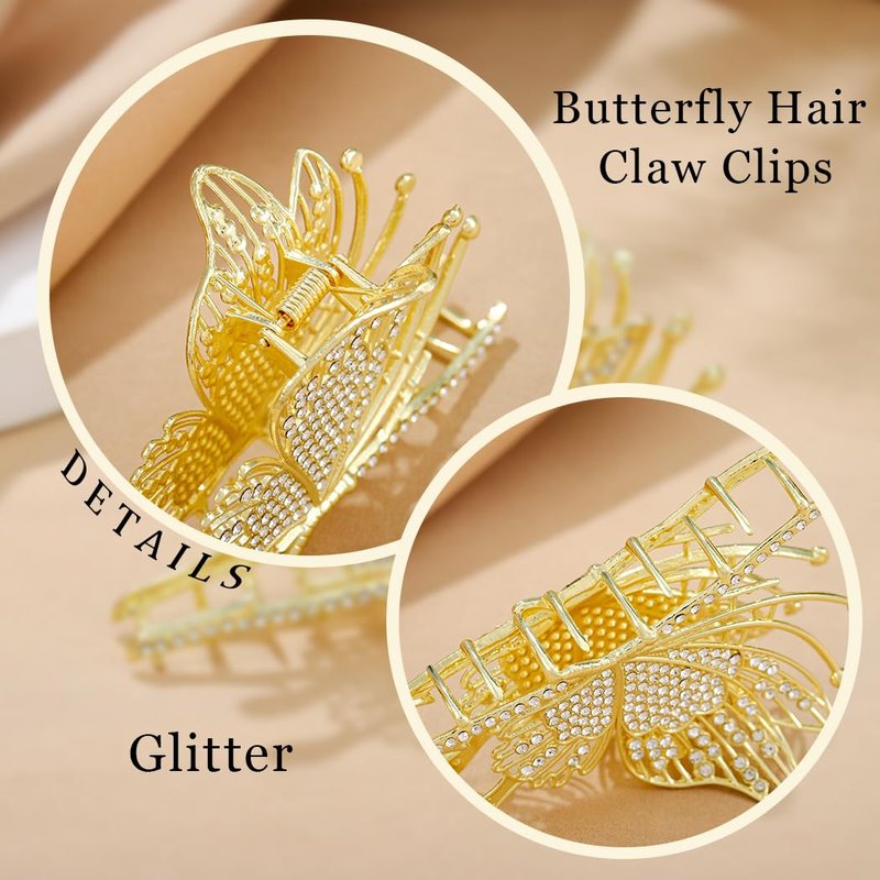 - Jumbo rhinestone butterfly hair claws are approx 4.0*2.1 In/10.2*5.3cm. Glitter metal clip claws make your fashion to get a touch of compliment.