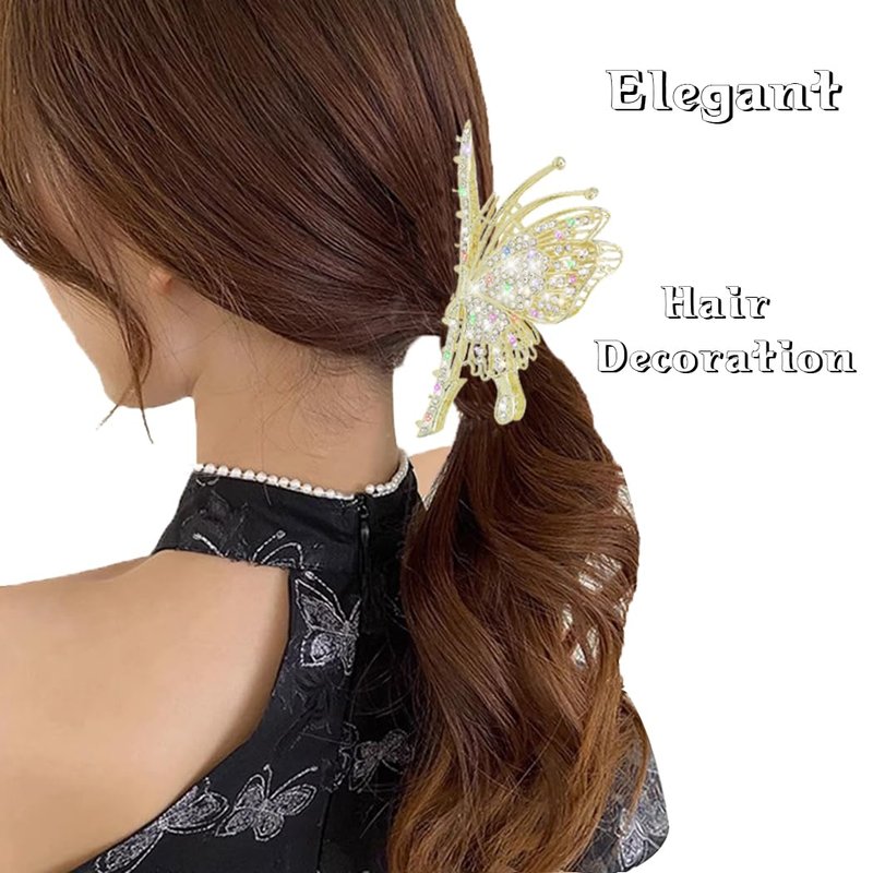 Yovic Fashion Rhinestone Butterfly Hair Clips Gold Hair Claw Clip Sparkly Butterflies Hair Jaw Clips 1Pcs Hair Accessories for Women and Girls (Butterfly Clip)