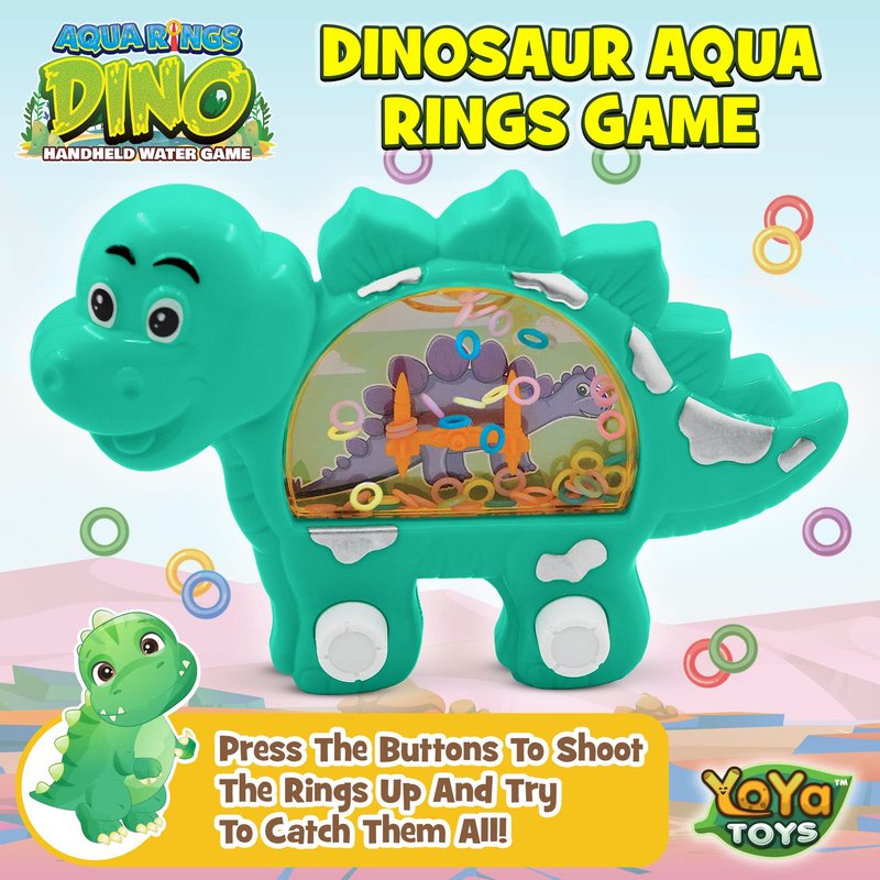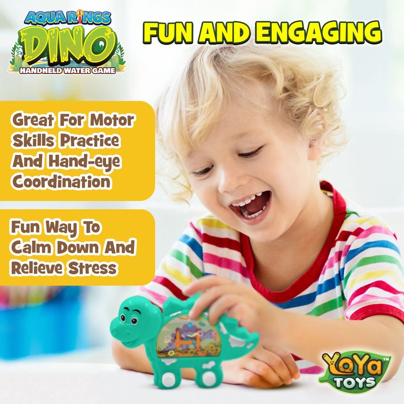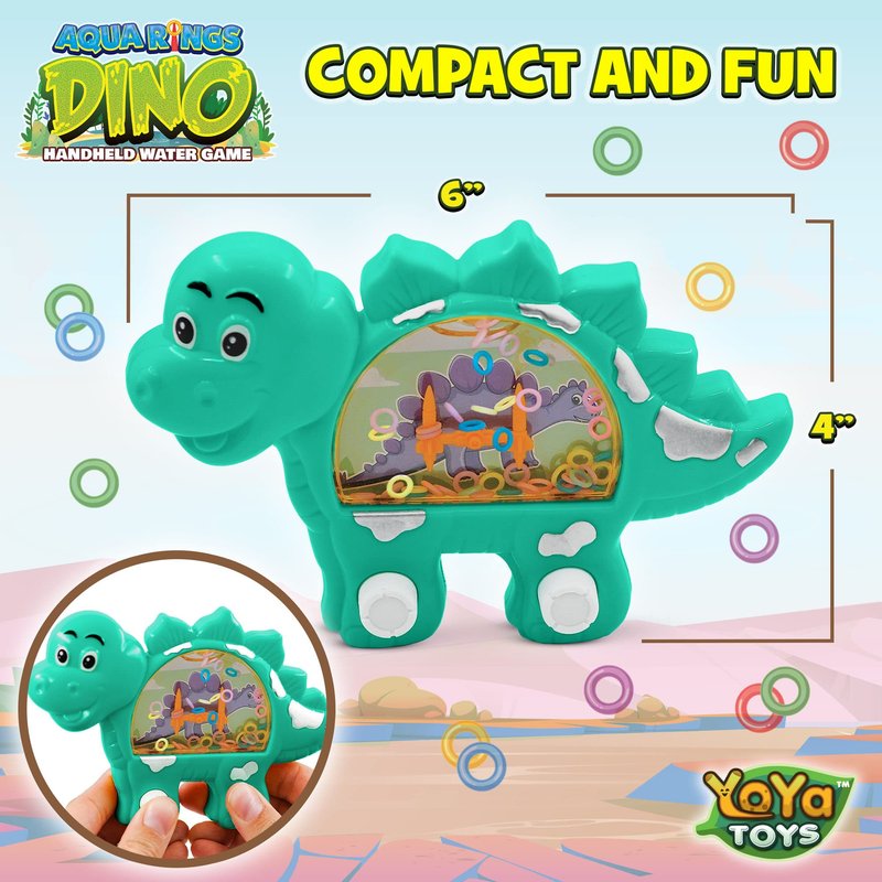 YoYa Toys Aqua Rings Dinosaur Handheld Game for Kids - Retro Toys Nostalgic Car Activities for Kids - Portable Road Trip Toys and Calming Travel Games - Great Dinosaur Toys Gift and Party Favors