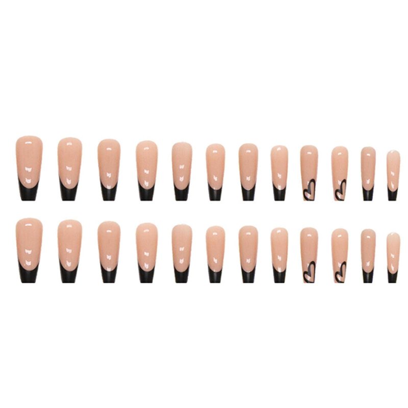 YoYoee French Long Press on Nails Cute Fake Nails Coffin False Nails Acrylic Full Cover Black Stick on Nails for Women and Girls 24PCS