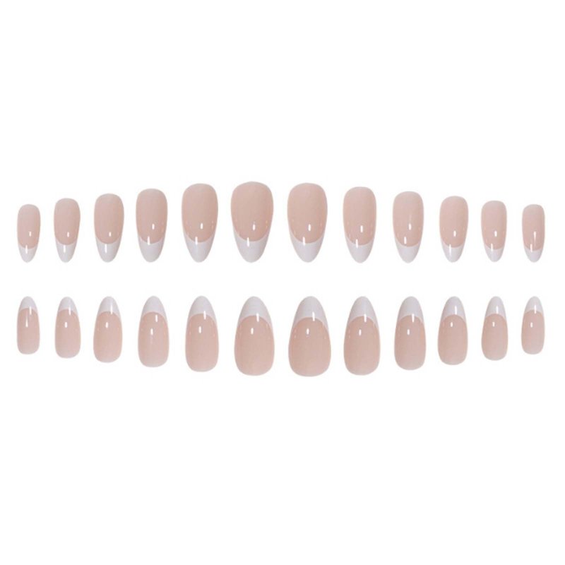 YoYoee Press on Nails Short French Fake Nails Almond Cute Tips Acrylics Full Cover White False Nails for Women and Girls 24PCS