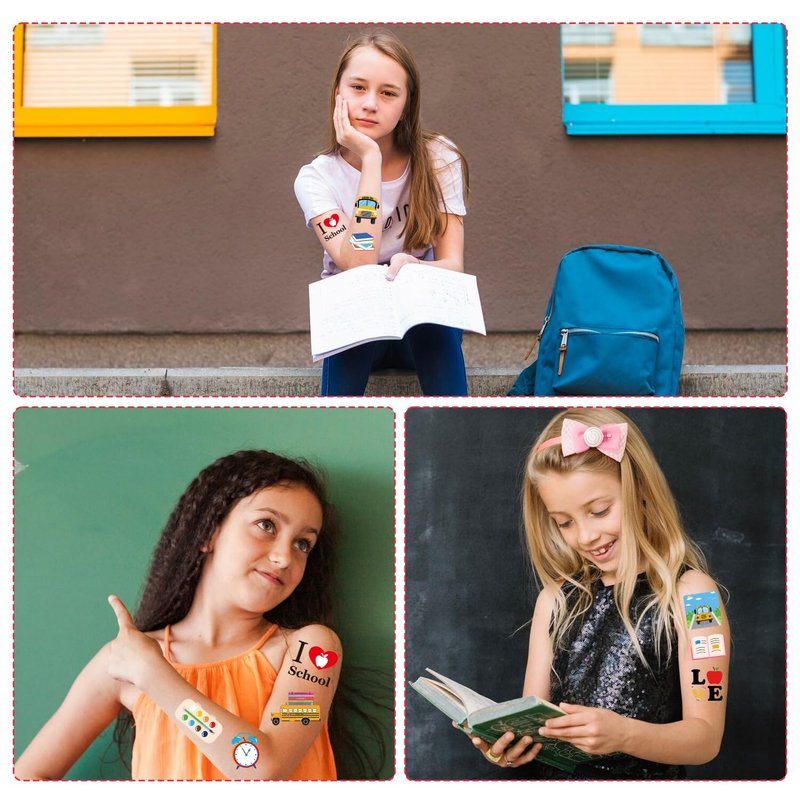 - What You Get: You will receive a back to school season themed temporary tattoo sticker kit containing 8 back to school season temporary tattoo stickers totaling 200+ pieces. During the special time of the back-to-school season, students can promote friendship and interaction by giving and wearing tattoo stickers to each other. Not only is this a stylish way to express themselves, but it also allows students to bond and get along better in the new semester.