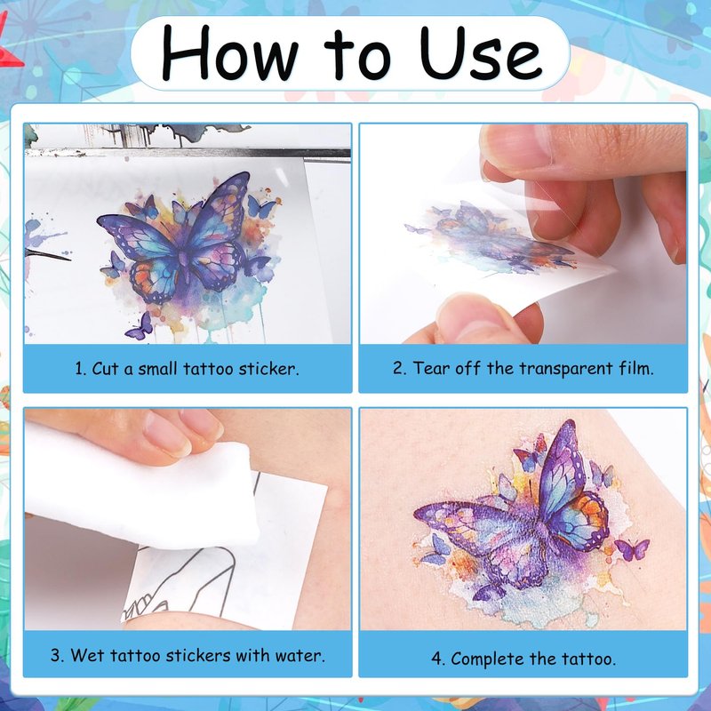 - Convenient and Practical: Temporary tattoo stickers are very convenient to use, and you can easily have tattoos with different patterns. You can change your favorite tattoo at any time without spending too much time.
