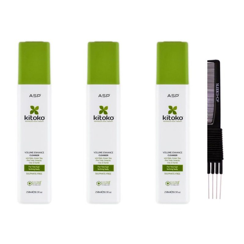 yper Asp Kitoko Volume - Enhance Leave Cleanser (8.5 oz) with Teasing Comb Pack 3