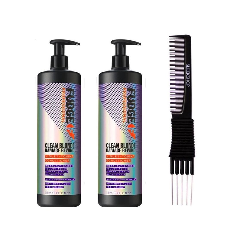 yper Fudge Clean Blonde Damage Rewind Violet Toning Conditioner (33.8 oz) with Teasing Comb Pack of 2