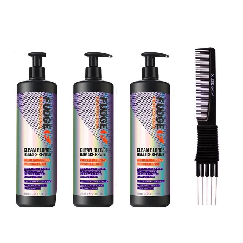 yper Fudge Clean Blonde Damage Rewind Violet Toning Conditioner (33.8 oz) with Teasing Comb Pack of 3