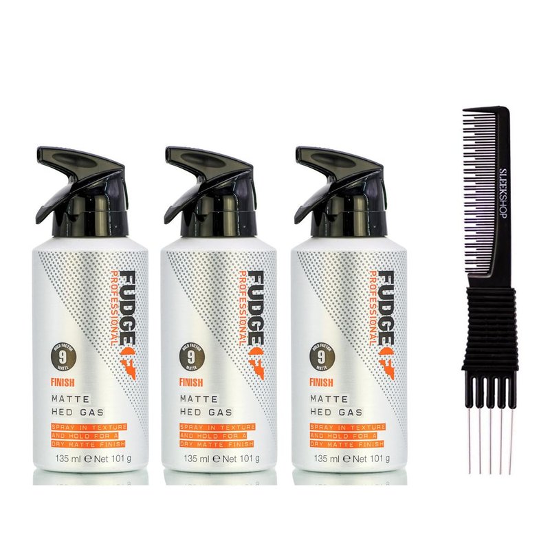 yper Fudge Professional Finish Matte Hed Gas (4.56 oz) with Teasing Comb Pack of 3