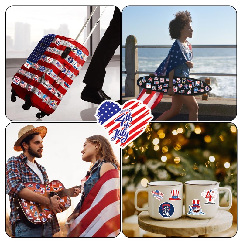 - WIDE APPLICATIONS - These Patriotic Stickers are suitable for 4th of July party DIY decorations, and all other relative uses. Fourth of July Stickers can also be used anywhere. It will meet your personal needs to your Laptop, Skateboard, Luggage, Car, Bumpers, Bike, Bedroom, Travel Case, Bicycle, Motorcycle, Snowboard, etc.