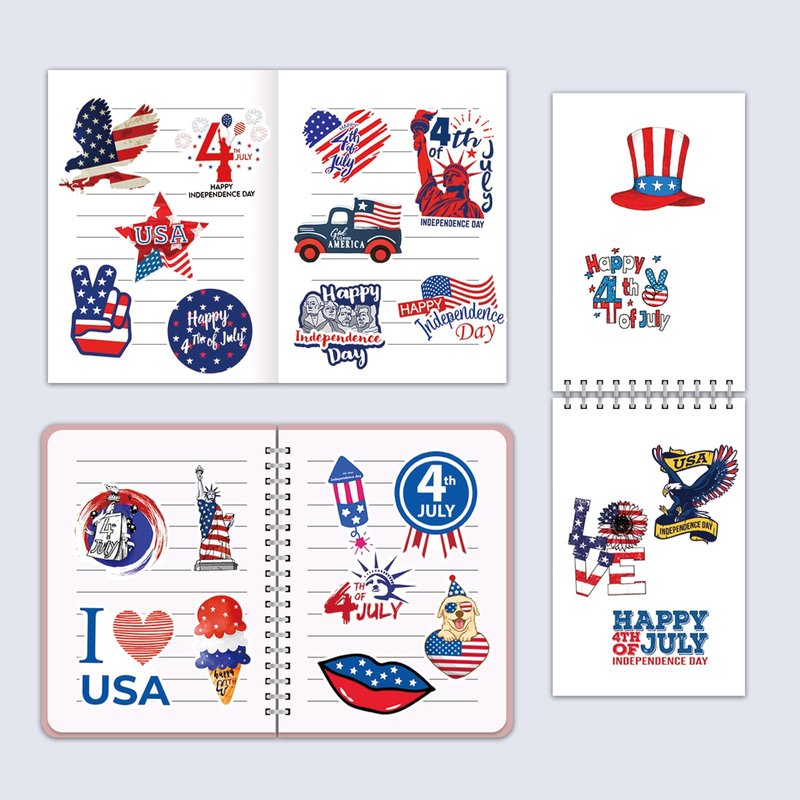- EASY TO USE - Add some patriotic flair to your decorations this Independence Day with our hassle-free Independence Day decoration stickers. With no need to cut them, simply clean and dry the surface, peel off the sticker from the backing sheet, and press it onto the desired location. Ensure a strong hold by flattening the sticker. Our 4th of July decor mixed pack features non-marking glue that can be re-applied if needed, and won't leave any residue when peeled off.
