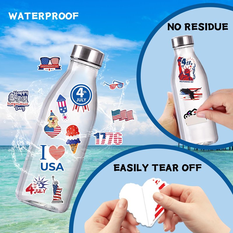 - HIGH QUALITY - Our 4th of July Stickers Pack is crafted using high-quality vinyl PVC and is available in sizes ranging from 1.8 inches to 4 inches. These stickers are designed to withstand exposure to water and sun, making them ideal for outdoor use. You can be confident that the colors will remain vibrant and won't fade easily. With these stickers, you can let your creativity run wild and enhance your 4th of July party decorations. Order now and add an extra dose of fun to your celebrations!