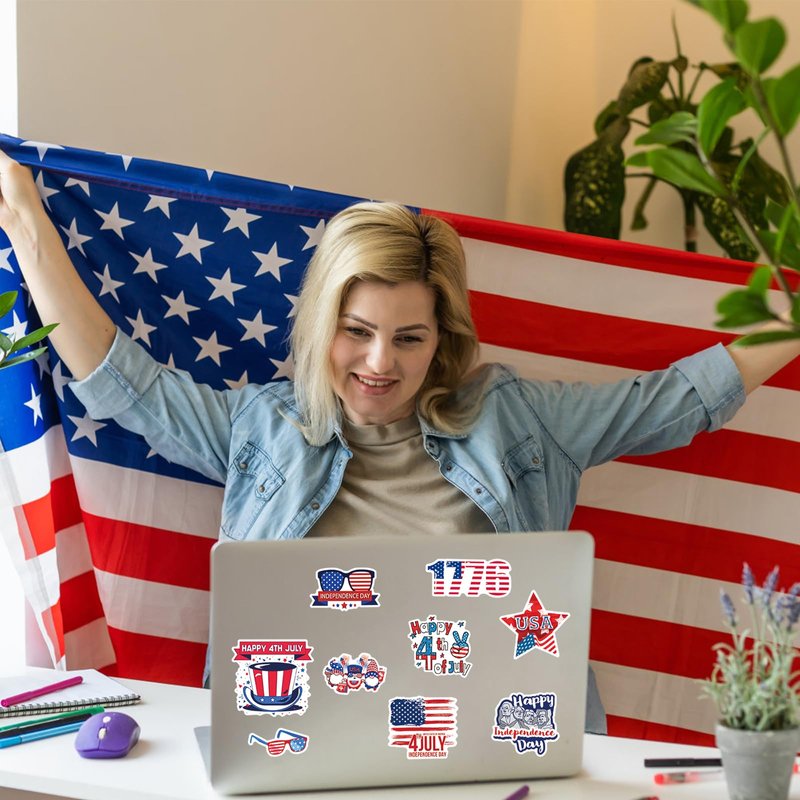 YQUQWN, 50 PCS 4th of July Stickers, Patriotic Stickers, 4th of July Decorations for Kids Adults, Fourth of July Stickers for Water Bottles, Independence Day Decorations, Waterproof Vinyl Stickers