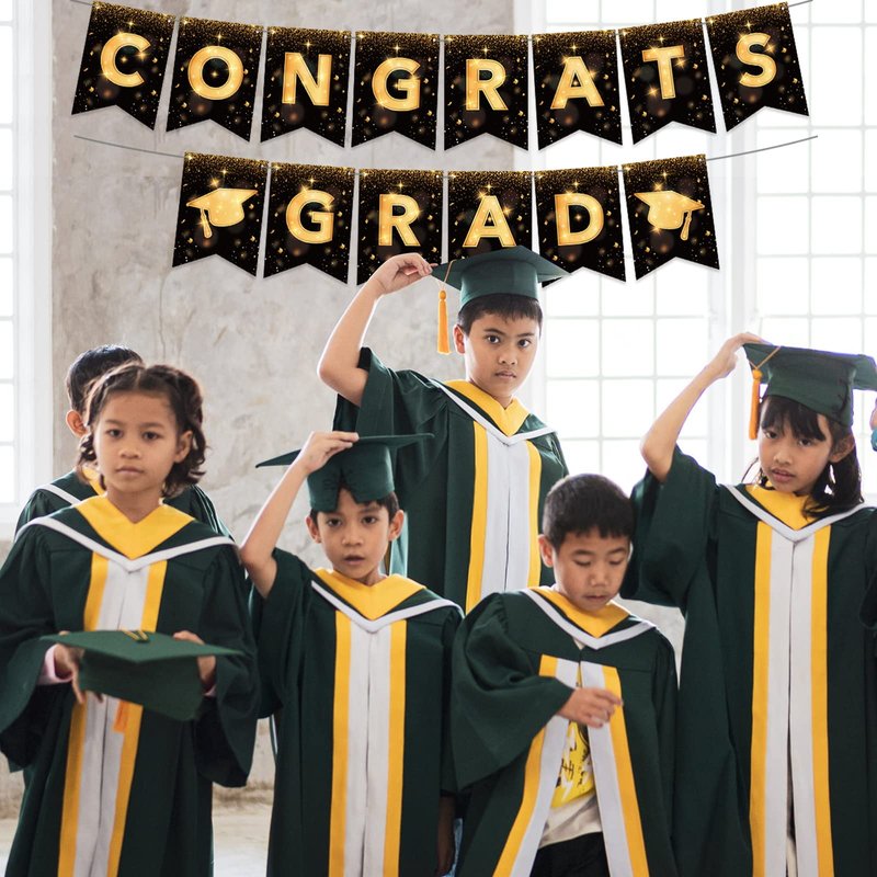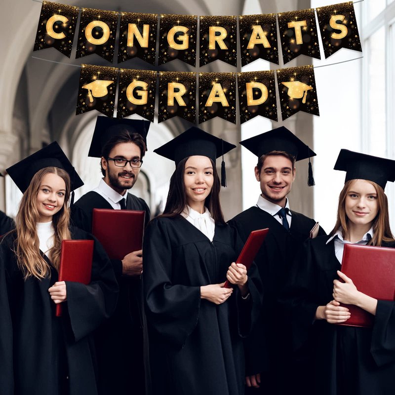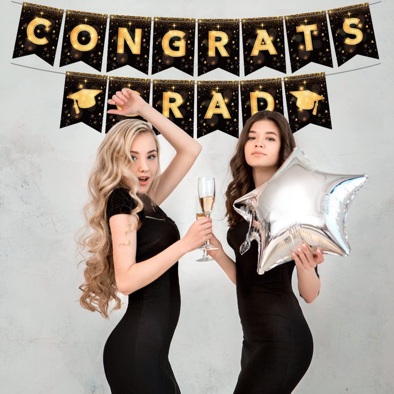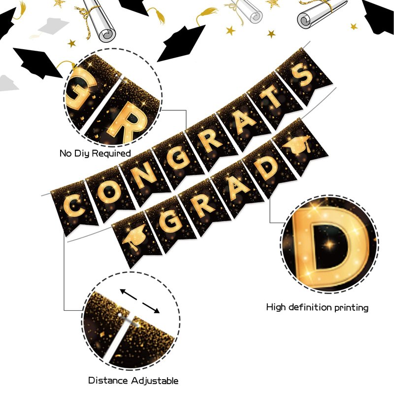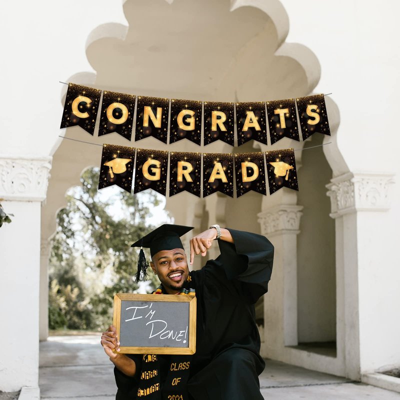 YQUQWN, Congrats Grad Banner, NO DIY Graduation Banner 2024 Congratulations Banner, Black and Gold Graduation Decorations 2024 Graduation Party Decorations 2024 Class of 2024 Decorations