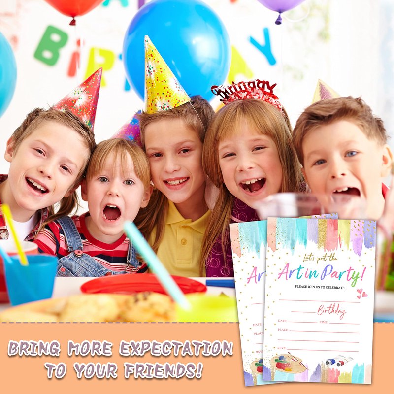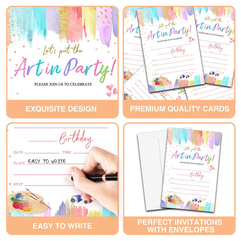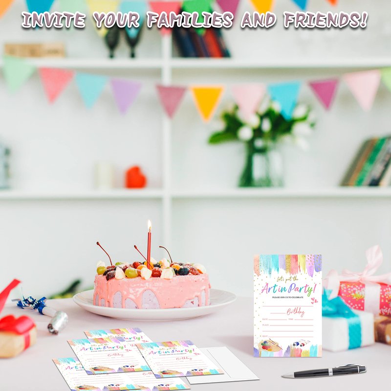 YQV Art Birthday Party Invitations, 20-Count Painting Birthday Party Invites With Envelopes-HBYQK-B56