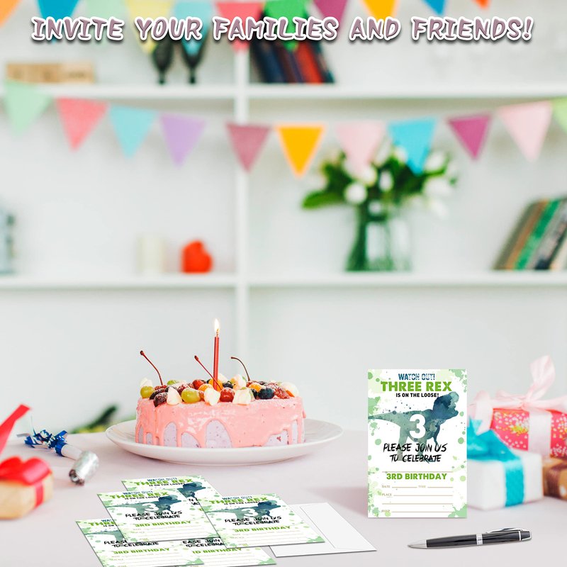 YQV Dinosaur 3rd Birthday Party Invitations, 20-Count Dinosaur Three Rex Birthday Party Invites With Envelopes-HBYQK-B54
