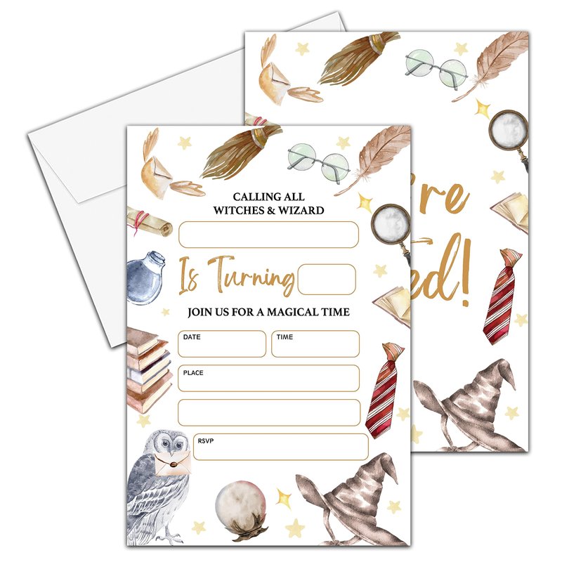 YQV Magical Wizard Birthday Invitations Cards, 4"x 6" Magician Owl Birthday Party Invites with Envelopes for Halloween Party Decorations Supplies (20 Pieces) - A01