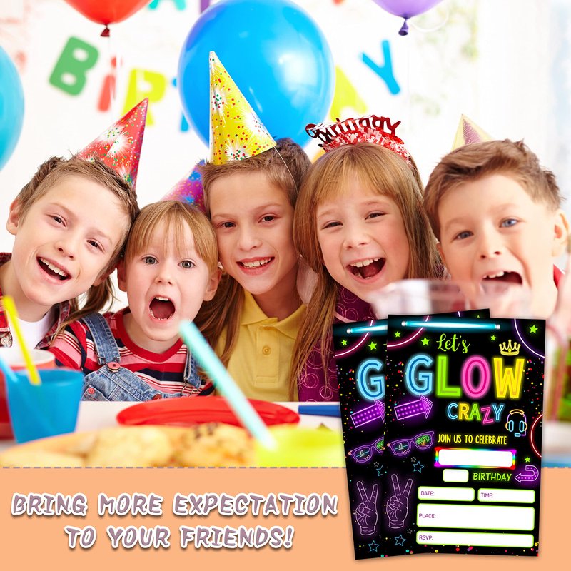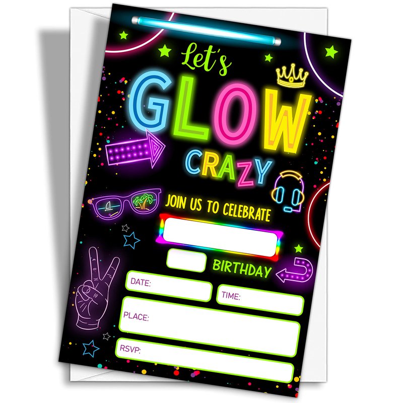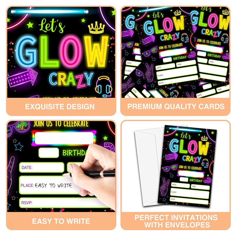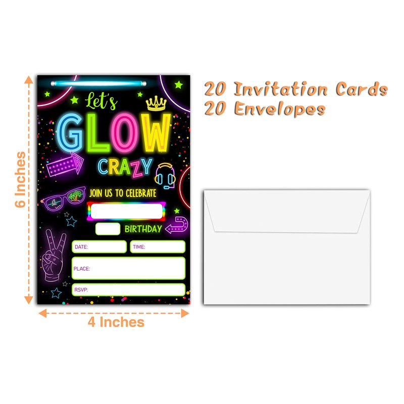 YQV Neon Glow Invitation Birthday Party Invitations, 20-Count Let's Glow Crazy Theme Birthday Party Invites With Envelopes-HBYQK-B02