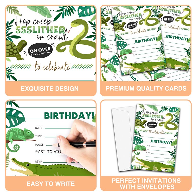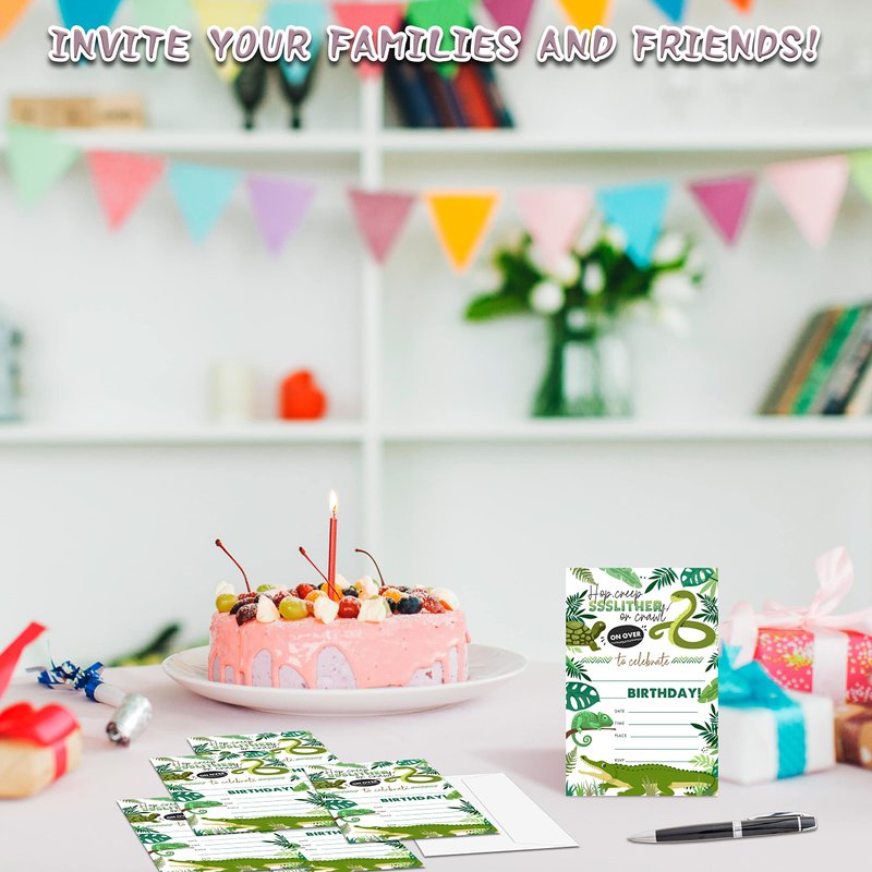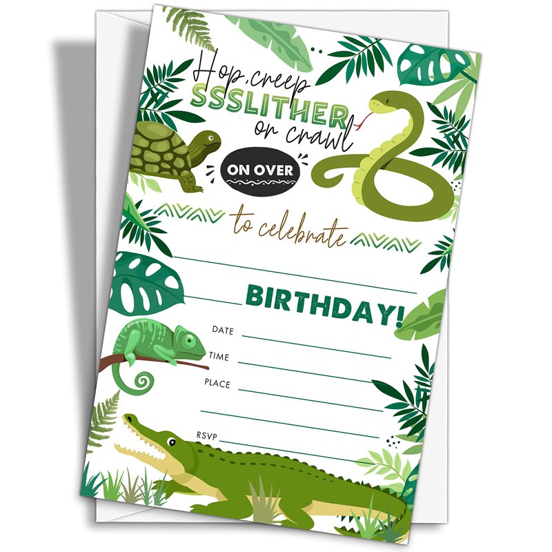 YQV Reptile Birthday Party Invitations, 20-Count Snake Lizard Crocodile Theme Birthday Party Invites With Envelopes-HBYQK-B35
