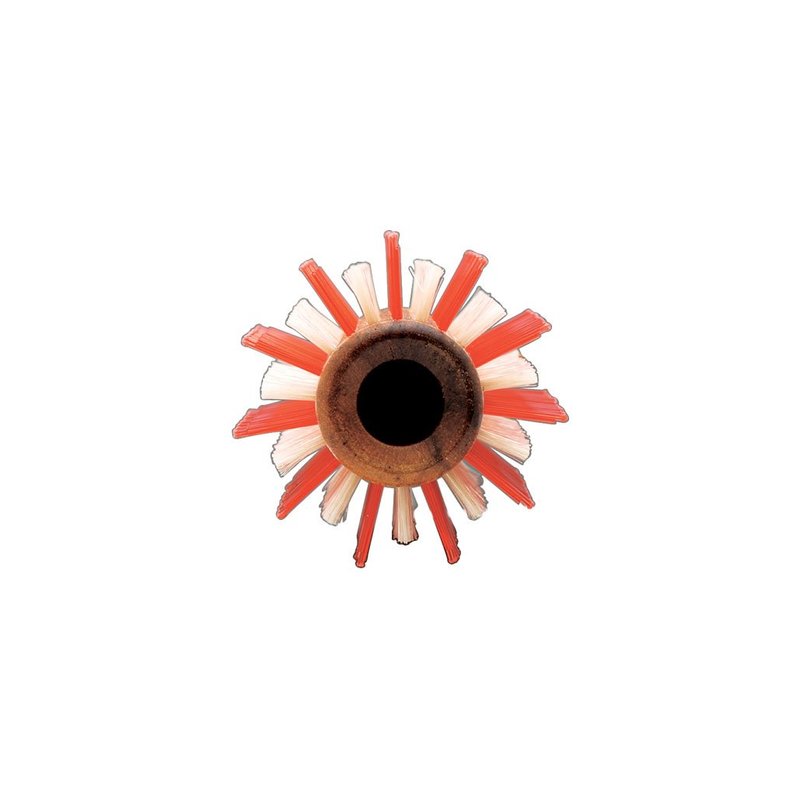 Made from natural Teak wood, and designed with both boar bristle and heat resistant nylon pins in alternating rows. The boar bristles smooth the hair’s cuticle while the nylon pins grab and pick up sections of hair with ease, allowing stylists to brush through the hair much more fluidly than traditional boar bristle only brushes.
