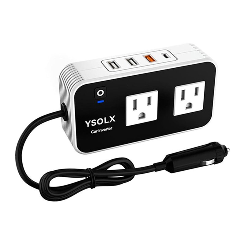 YSOLX 200W Car Power Inverter, DC 12V to 110V AC Converter, Fast Car Charger Adapter with [20W USB-C/USB-QC(18W)/ 4.8A Dual USB/Dual AC Outlet], Car Plug Adapter Outlet for Laptop