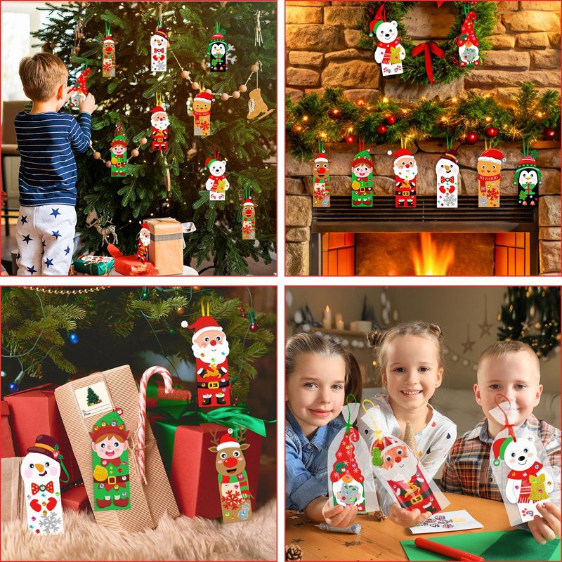 - Easy to Create: These Christmas Diy Christmas ornaments are easy to store and can be pasted and peeled multiple times; Simply place the matching stickers on the original card—no extra tools needed; these kids christmas crafts are lightweight and portable, they're perfect for Christmas parties, classrooms, or group activities; The kit includes transparent bags and twist ties for individual gift sets, adding a special winter touch with festive stickers; Ideal for fostering creativity