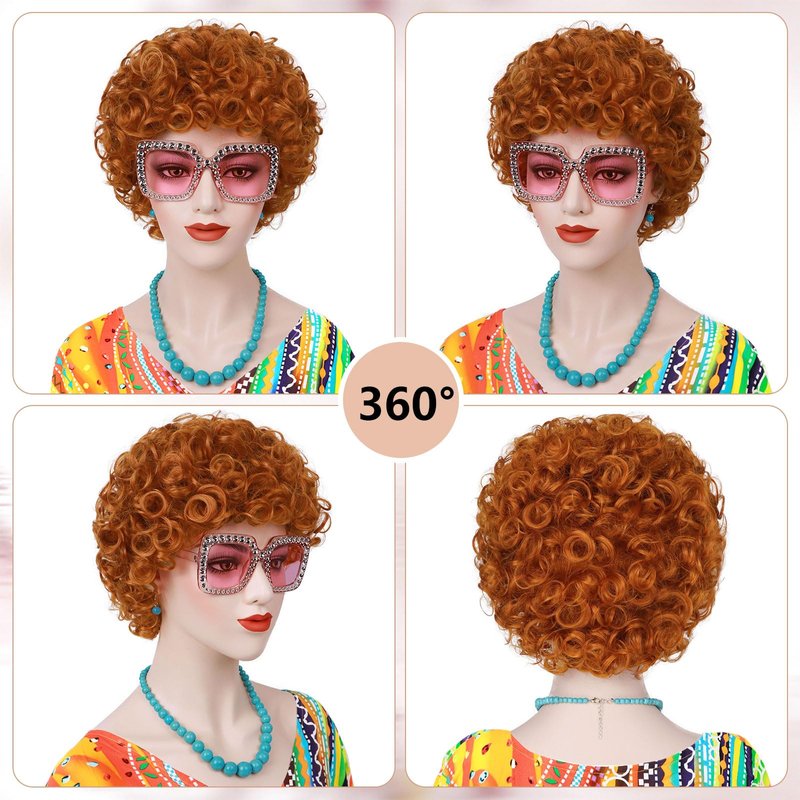 - 【Fun for Costume】The red orange curly wig is a fun and vibrant accessory perfect for any landlady costume, plays (think "Annie"), Halloween, themed parties, or other fun events. Its short, reddish-orange curls are both playful and eye-catching.