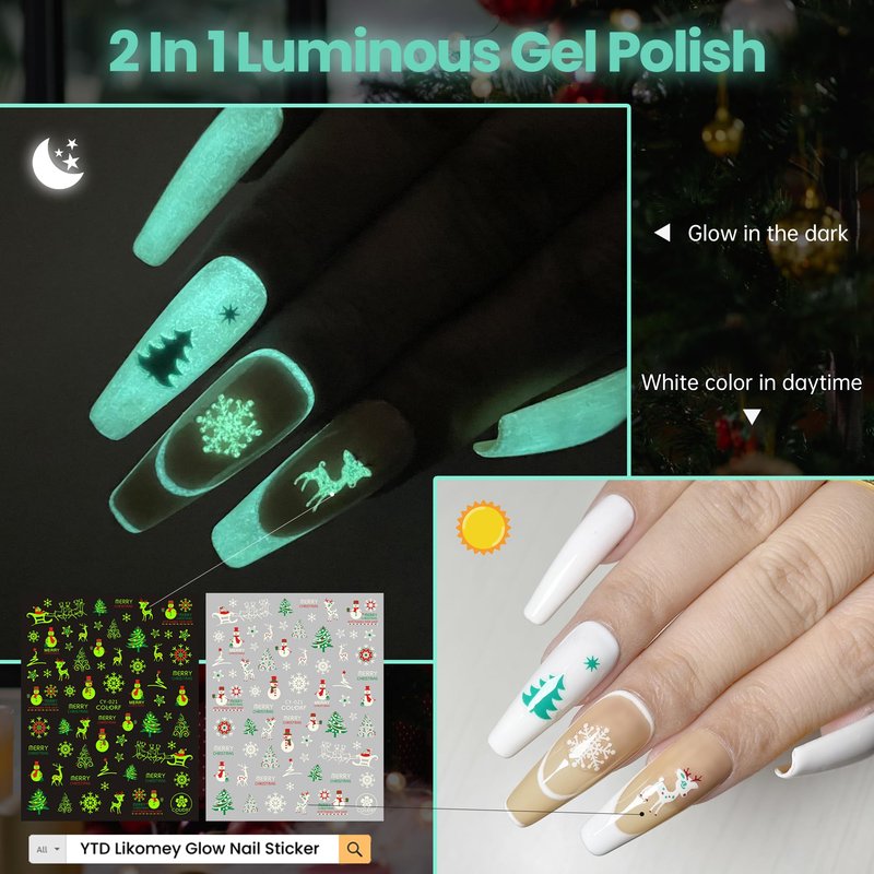 YTD Likomey Glow in the Dark Gel Polish,15ml White Green Luminous Glow Effect UV Nails Gel,Fluorescent Bright Neon Shiny Salon Home DIY UV Manicure Nail Art Varnish,YG379