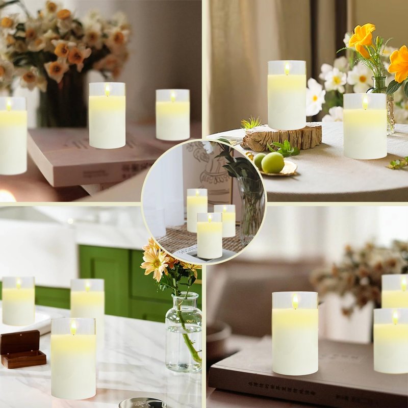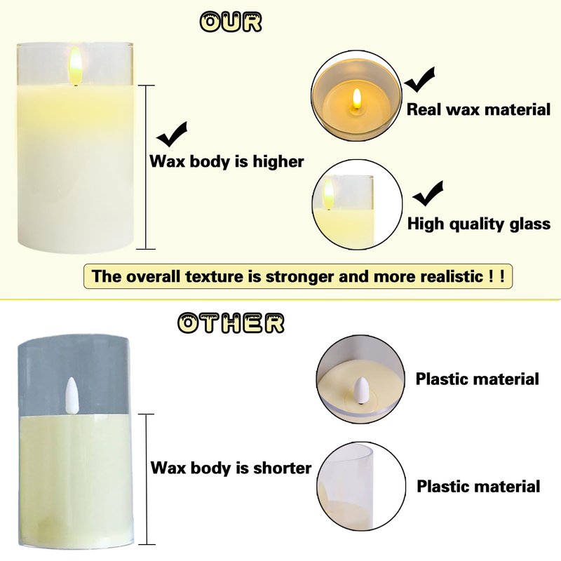 - Upgraded Material: Realistic Glass Flameless Candles - These glass led candles has real flame effect, real wax in glass holder, flickering softly and giving off a warm glow, creating a cozy feeling