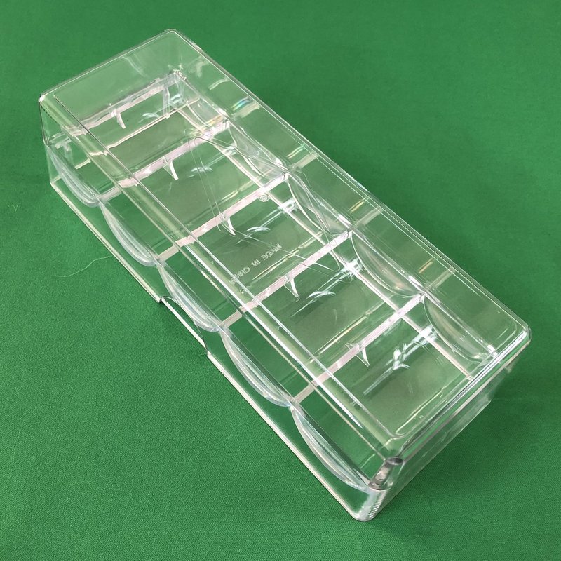 This acrylic poker chip racks are made of durable clear acrylic. Each poker chip rack has 5 rows that hold up to 20 chips each, or 100 chips total. Each rack comes with a cover. Each tray and cover set measures approximately 8.3 inches long,3.2 inches wide and 2.2inches height.Great for home or professional use.1 rack & 1 cover per order.Poker chips are not included