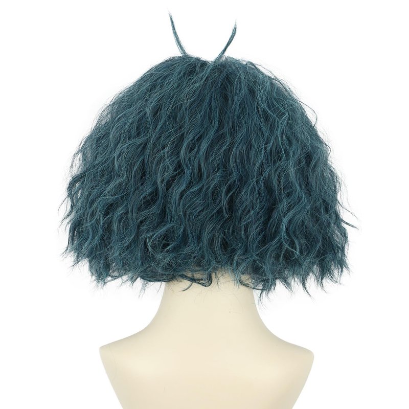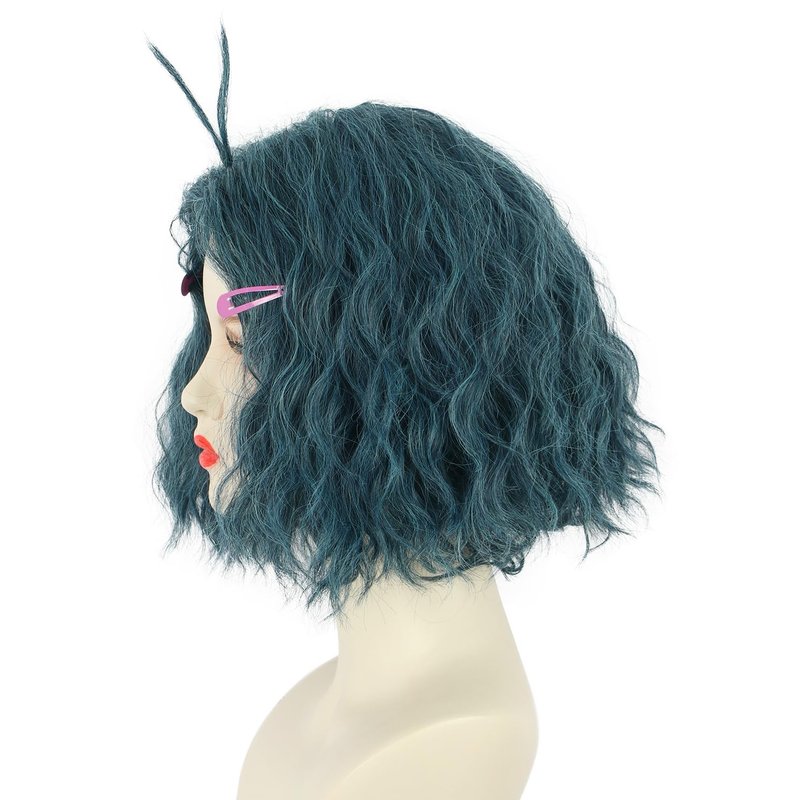yuehong Short Dark Green Curly Wig Anime Wig Halloween Cosplay Costume Wig for Women with Purple Hairpins(Adult)