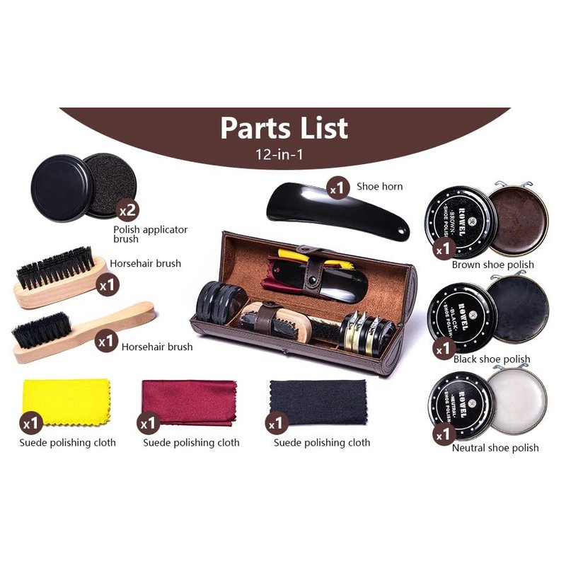 - 12 pieces care kit for leather shoes.
