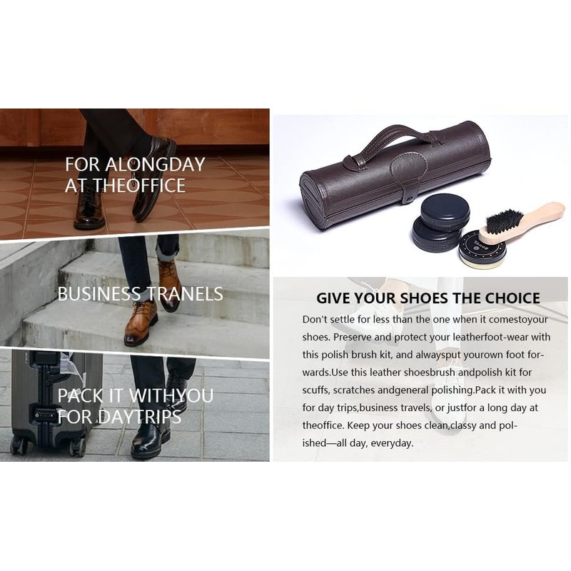 - Perfect Travel Kit: With the larger brushes and 50ml shoe polish tins there is no compromise on quality while still offering the size and weight suitable for travelling light.