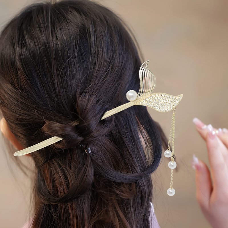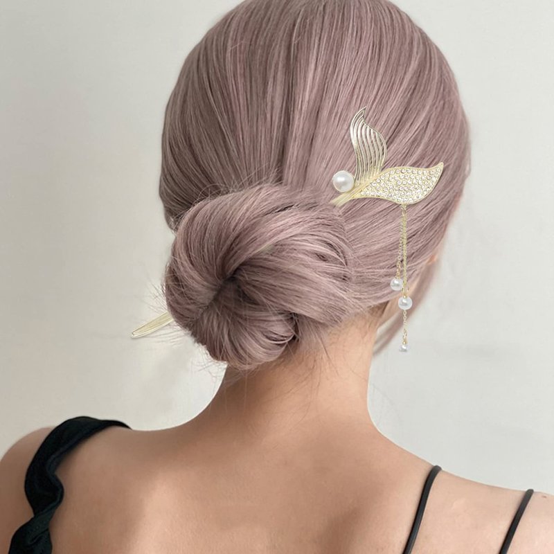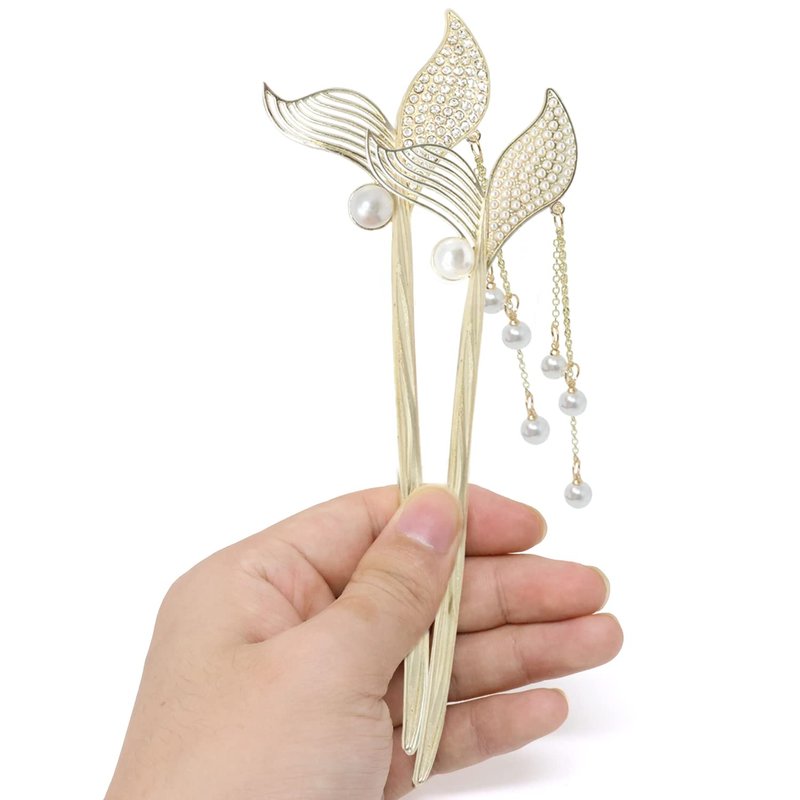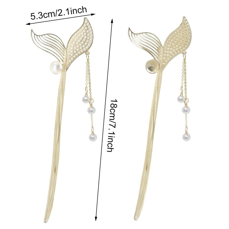 - Package includes: 2PCS Fashion Fish Tail Alloy Hair Stick with Tassel