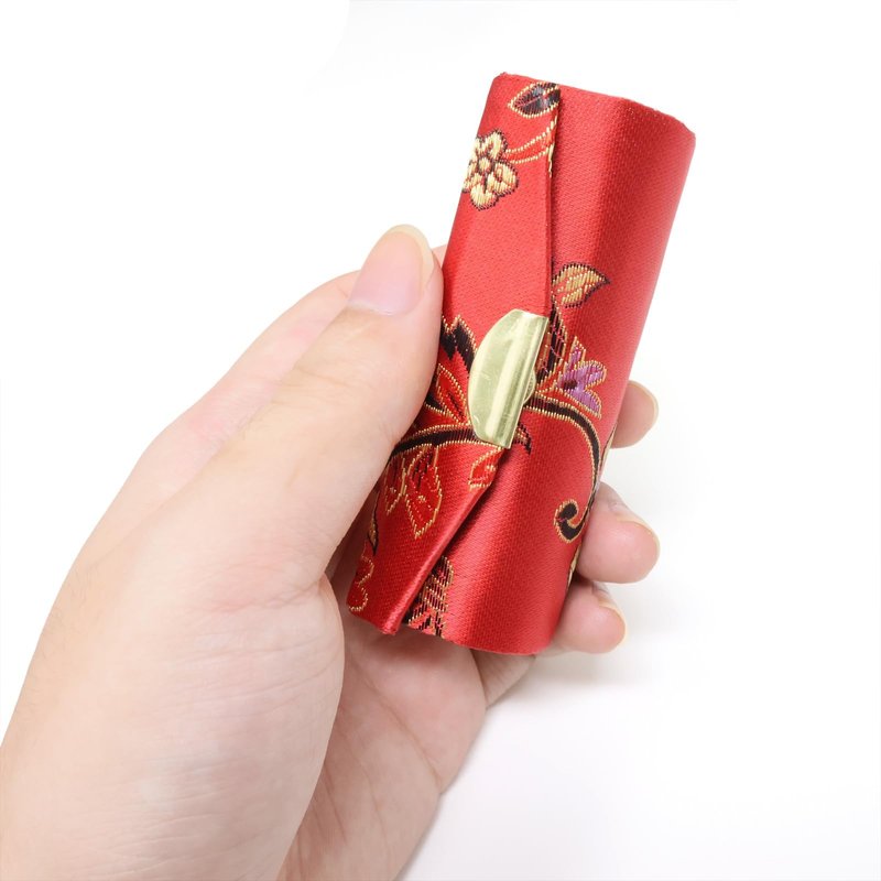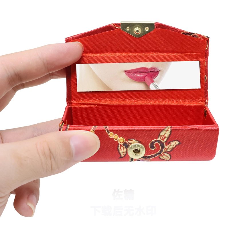 - Material: The outer layer of the lipstick is made of brocade and the shell is plastic with a small mirror built in.