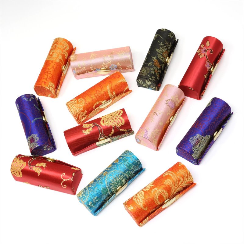 yueton 4 Pack Chinese Style Brocade Lipstick Case Unique Woven Satin Lipstick Holder Lipstick Box with Mirror for Women Girls, Random Colors