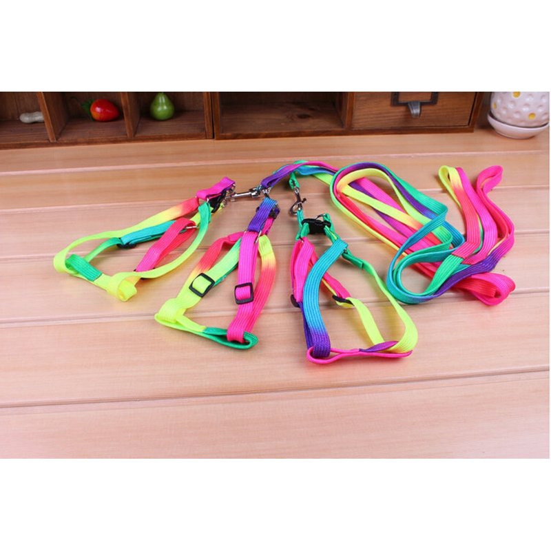 yueton Dog Pet Puppy Cat Kitty Adjustable Nylon Leash Rainbow Dog Chest Straps Chain Seven Color Traction Thoracic Dorsal Suits Dog Rope Dog's Leash Chain