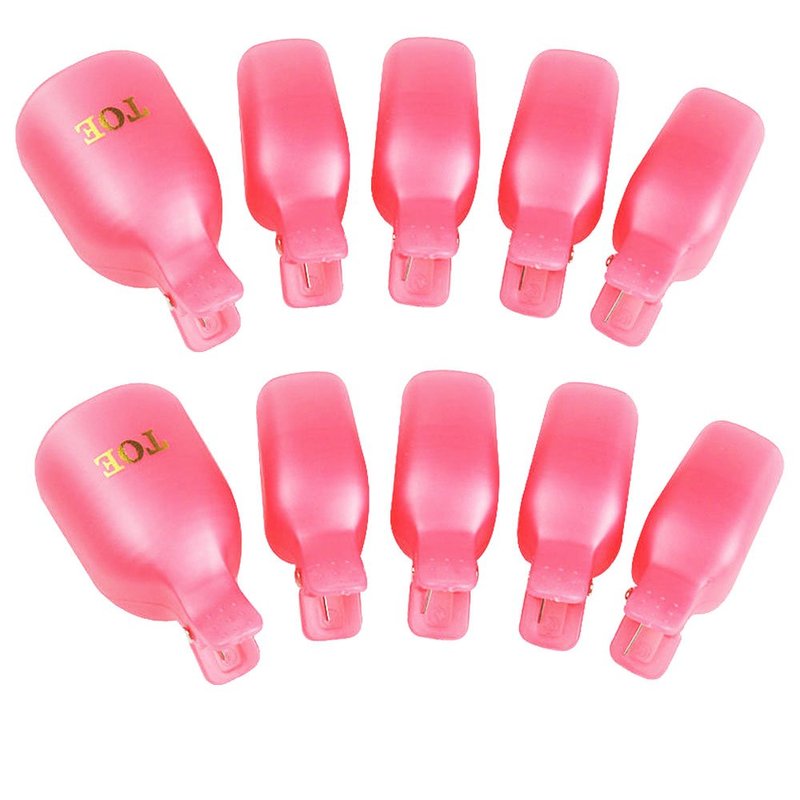 yueton Pack of 10 Reusable Toenail Nail Art Soak Off Cap Clip Remover Tool (Pink)