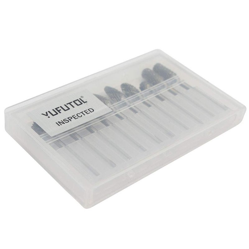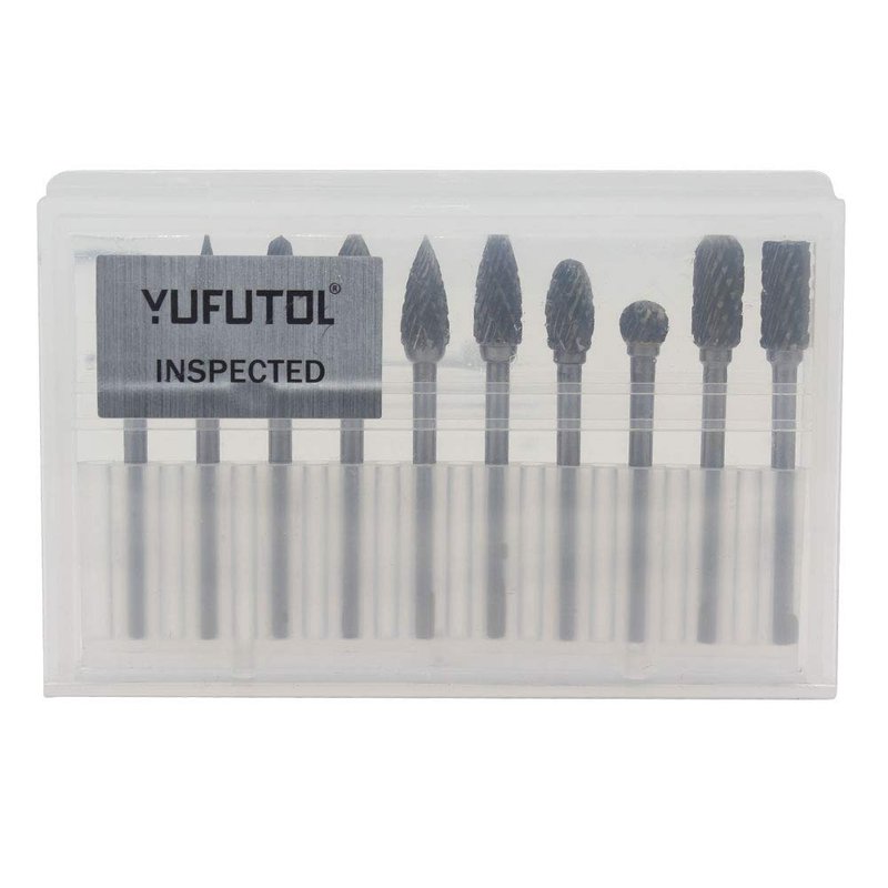 YUFUTOL Carbide Burr Set - 10pcs Double Cut Solid Carbide Rotary Burrs 3mm(0.118'') Shank Fits Die Grinder Drill for Woodworking,drilling Metal Carving Engraving Polishing
